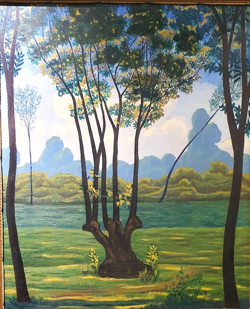 (2). Se Salvo si richiama al passato a questi Autori perché lui vende delle opere di ugual misura a 50/70mila euro? mentre il nostro Russolo ne vale, per l’attuale mercato, un decimo? Dove sta l’inghippo? nel fatto che è più noto come musicista e teorico del “rumore”? ma, non è stato uno dei cofondatori del Futurismo con Marinetti, Boccioni, Severini, Carrà e Balla? Ancora, non sono pure questi passati, poi, alla figurazione superando l’interventismo futurista? Boccioni nel 1916, poco prima di morire per una caduta da cavallo, dopo il ritratto di Busoni sembrava guardare a Cezanne col suo Paesaggio con montagne e lago, del 1916 (Verona, proprietà della Galleria dello Scudo). Severini ha dipinto nature morte ben identificabili, Carrà teorizzava Valori Plastici, ritornando al ‘400 fiorentino, e Balla? di Balla: Fabio Benzi, curatore di una sua importante mostra è convinto che il Balla ” «tornato» alla pittura figurativa negli ultimi trent’anni della sua esistenza.. …. non si tratti di un vero e proprio «ritorno», bensì di un’evoluzione tutta nuova del medesimo spirito futurista”(2). Interessante qui ricordare questo “spirito futurista” che si muove sotterraneamente nel pittore.  Ma perché a Russolo presente nelle grandi collezioni europee e americane si deve far pagare lo scotto dello cambio di genere, o cambio di casacca come si dice? Probabilmente questo è un vezzo del solo mercato italiano che non sostiene i suoi artisti storici. Ma, non può essere che Ottone Rosai valga 2 volte di più della stima d’asta di un Russolo. Rosai è un buon pittore niente di più e pure senza grande inventiva. Dove sta questa inventiva? riprendiamo il filo conduttore del ragionamento di Russolo: “I (pittori) Neoclassici, hanno pure lisciato come un marmo la loro tecnica; ne è venuta quella fredda pasta di colore liscio e vetrato da ceramica che distingue le pitture di David, Ingres e Appiani.” Questa sua critica arguta sulla pittura Neoclassica, rende necessario uno scatto in avanti: “Ogni epoca ha avuto i suoi canoni espressi con certe caratteristiche formali ….Noi ne siamo dentro e prima che il tempo le abbia abbandonate cerchiamo di definire quelle della pittura contemporanea CLASSICO MODERNA” (3) . Questo ossimoro diviene lo scatto che mancava alla filosofia della sua pittura si Classica perché si rifà ad una visione “tradizionale” ma, Moderna perché è inverata nel Presente della vita. Il presente è la storia che avanza in un flusso temporale continuo non scandito da categorie estetiche, bensì storiche in una continuità senza rotture di tempo e spazio. Sotto il vigile occhio del tempo si fa un passo avanti e due indietro. Ma Russolo è dentro il contesto artistico del Ritorno all’Ordine, o, il suo è uno dei tanti colpi di testa? cioè come quando molla la pittura e la musica per dedicarsi al magnetismo collaborando con il Torre?! Siamo nel 1926 e il poeta pittore e amico di Picasso, Jean Cocteau raccoglie in un libro dei saggi sotto il titolo Le Rappel à l’Ordre, un invito agli artisti, che si sentivano traduttori dello spirito del Novecento, i quali pur provenendo da esperienze e artistiche differenti erano legati da un senso comune di “richiamo all’ordine” nell’arte. Così Cocteau: dopo le sperimentazioni avanguardiste del primo Novecento  (Futurismo,Cubismo)… il Novecento torna quindi ad avere come supremo riferimento l’antichità classica, la purezza delle forme e l’armonia nella composizione.” (4) Ma, soprattutto questo bisogno viene incanalato dalle ideologie dell’epoca come il Fascismo e il Nazismo che spingono verso una semplificazione dell’arte in funzione monumentalistica per  controllare le masse. E mentre in Italia ciò avviene in forma quasi naturale (tutto il gruppo futurista s’iscriverà al partito fascista, eccezion fatta per il Russolo), in Germania si organizza nel 1937 una mostra sull’Arte Degenerata a Monaco di Baviera dove furono esposti 650 lavori di artisti avanguardisti denigrati dal regime (5). Nello stesso periodo in Russia si avvia quella stretta sugli artisti che sfocerà nel Realismo Socialista. Quindi da un bisogno di ordine interiore, dopo l’ubriacatura avanguardista, tutto viene stravolto dai Governi in funzione ideologica. Luigi Russolo nel 1926 è presente alla Biennale alla mostra organizzata dalla Sarfatti con il suo Impressioni di Bombardamento (Portogruaro) dove il suo futurismo si esprime in maniera più semplice dentro dei zig zag di rossi e gialli a richiamare le luci delle bombe illuminanti (shrapnels e granate) e sotto in trincea dei soldati dipinti in maniera figurativa. Egli era, si suppone, preso dalla musica: i suoi concerti vanno avanti fino al 1928 in giro per l’Europa ed erano seguiti dall’intellighenzia della musica: Satie, Stravinskij, Diaghilev, Kpzy, Varése, col quale collaborò per molto tempo alla produzione del suo rumorarmonio. Quindi era un artista a tutto tondo che operava su più piani, mentre attorno gli altri artisti, soprattutto i pittori, continuavano nel loro lento procedere. Si attribuisce in maniera non convincente, a mio modo di vedere, l’inizio della sua pittura Classico Moderna al quadro Aurora Boreale del 1938. Ci sono però sue opere pittoriche figurative già nel 1937, credo questo stia a dimostrare che probabilmente egli per mantenersi facesse delle pitture di tanto intanto, salvo poi, libero dal libro Al di là della Materia (1938) che lo teneva impegnato, riprendere alla grande la pittura. Ma basta questo per “castigare”, mi si passi il termine, la “tarda pittura” di Luigi Russolo? Anzi direi che se come osò dire provocatoriamente Marcel Duchamp : “un artista crea due ore al massimo nella sua vita” questi non è di certo Russolo. Direi che proprio la parabola dell’opera di Duchamp, che rifece tutte le sue opere degli anni Trenta negli anni Sessanta, mentre prima si prese il lusso di diventare campione di s