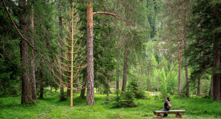 Il titolo della mostra rimanda alla guida letteraria per escursionisti Dolomiti cuore d’Europa(Hoepli, 2021), scritta dal poeta e scalatore Giovanni Cenacchi, dove descrive il sentiero di Pian de ra Spines come il “regno della dea Artemide” per la presenza di boschi e linee curve generate dal torrente Boite. L’allestimento delle opere di Margherita Morgantin, Italo Zuffi e T-yong Chung determina una modificazione, seppur lieve, all’interno dell’ambiente naturale, che trasforma una parte del sentiero in un “giardino” ideale: le opere possono essere lette nella propria valenza estetica e funzionale, oppure acquisire valore di “offerte” disinteressate alla natura, ma anche manifestarsi quali tangibili presenze del passaggio di Artemide. La tradizione classica insegna che non esiste una natura benevola o malevola: essa esercita la propria funzione indipendentemente dalla volontà umana, non può essere dominata e l’uomo deve adattarsi e accettare il proprio stato di transitorietà. Nella natura fluisce sempre una forza vitale, poiché il fine è l’affermazione della vita stessa: alla morte segue incessantemente la nascita (e viceversa). Non a caso Artemide è, al tempo stesso, protettrice degli animali selvatici e della caccia. Artemide attrae il visitatore nel proprio “giardino dolomitico” in Pian de ra Spines, spingendolo a “perdersi” e a inebriarsi del paesaggio in modo che possa percepire quella forza vitale, eterna, che i Greci proiettavano nell’ambiente, ai loro occhi realmente popolato da entità spirituali.
